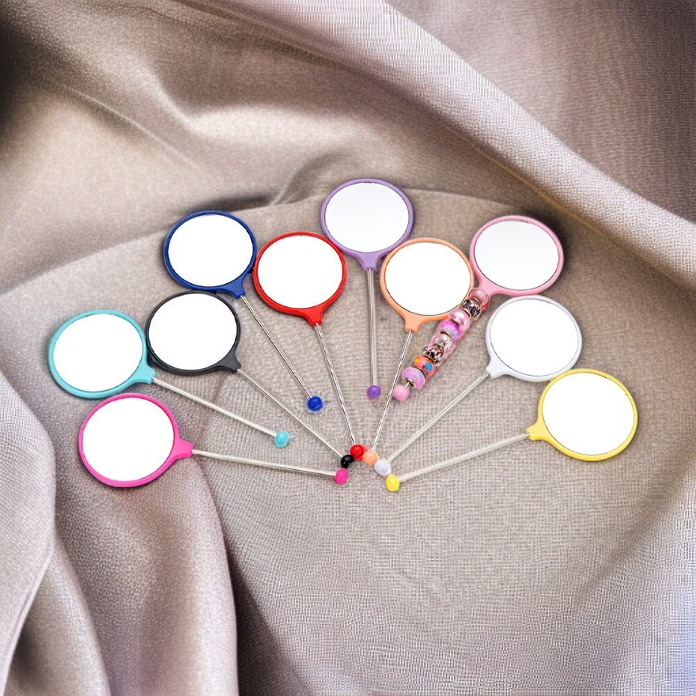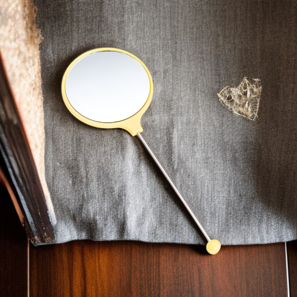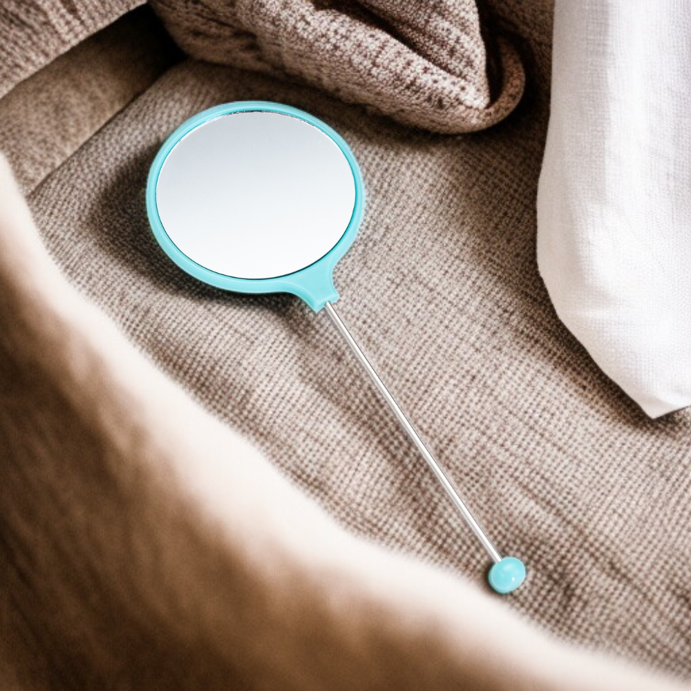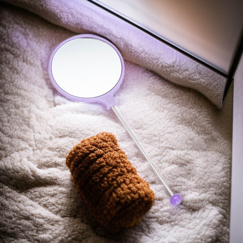 女性専用ハンドル付きメイクミラー 携帯用高精細丸型ビーズミラー